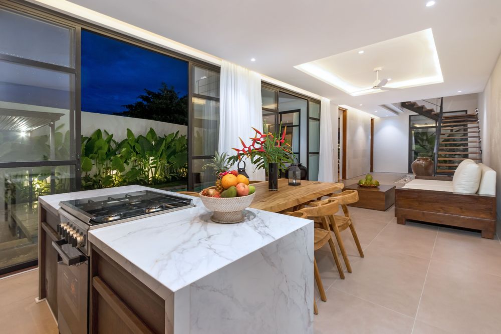 The villa offers an inviting atmosphere with seamless indoor-outdoor living, featuring an open living concept that can also be enclosed for versatility. Ideal for gatherings of friends and family, it blends spaciousness with coziness, creating a welcoming environment suitable for various social interactions and relaxation.