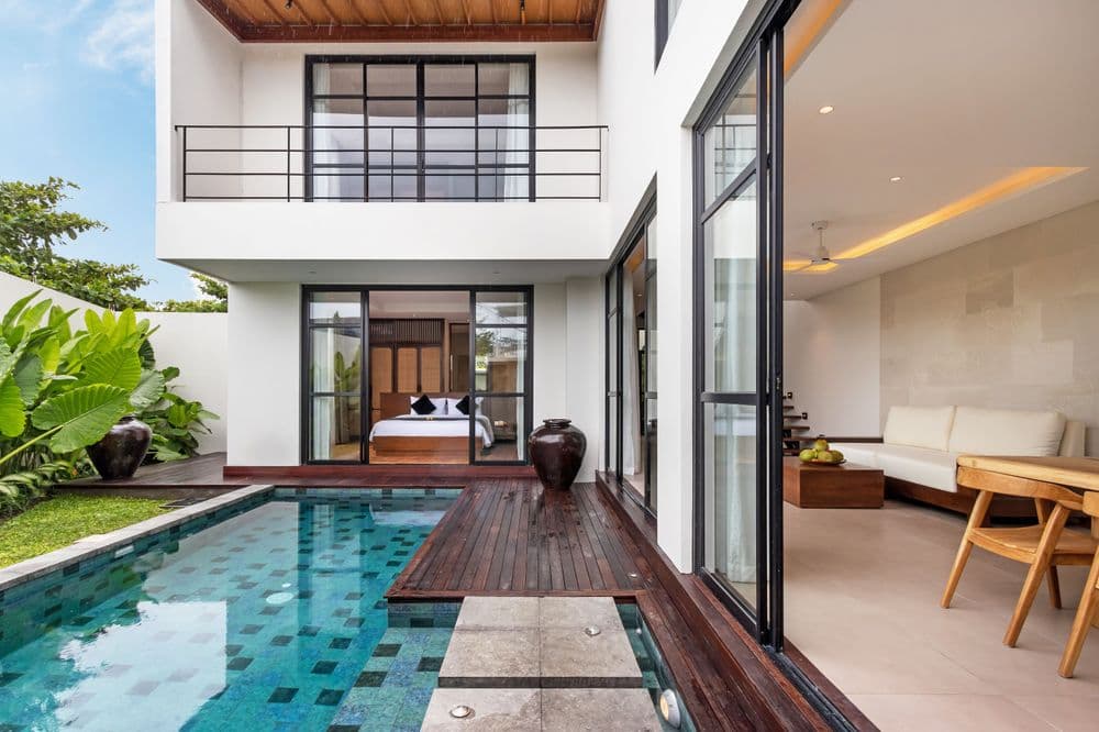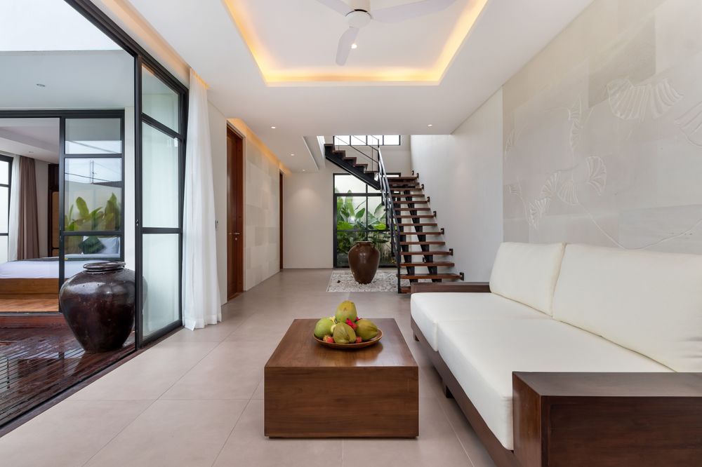 The use of white palimanan stone not only amplifies the serene and airy ambiance, but also reflects the traditional Balinese use of natural materials to create tranquil spaces.